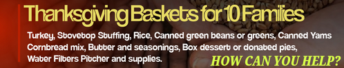 The Anointed Church of Jesus Christ would like to provide baskets of food and goods to up to 10 families this Thanksgiving Season.